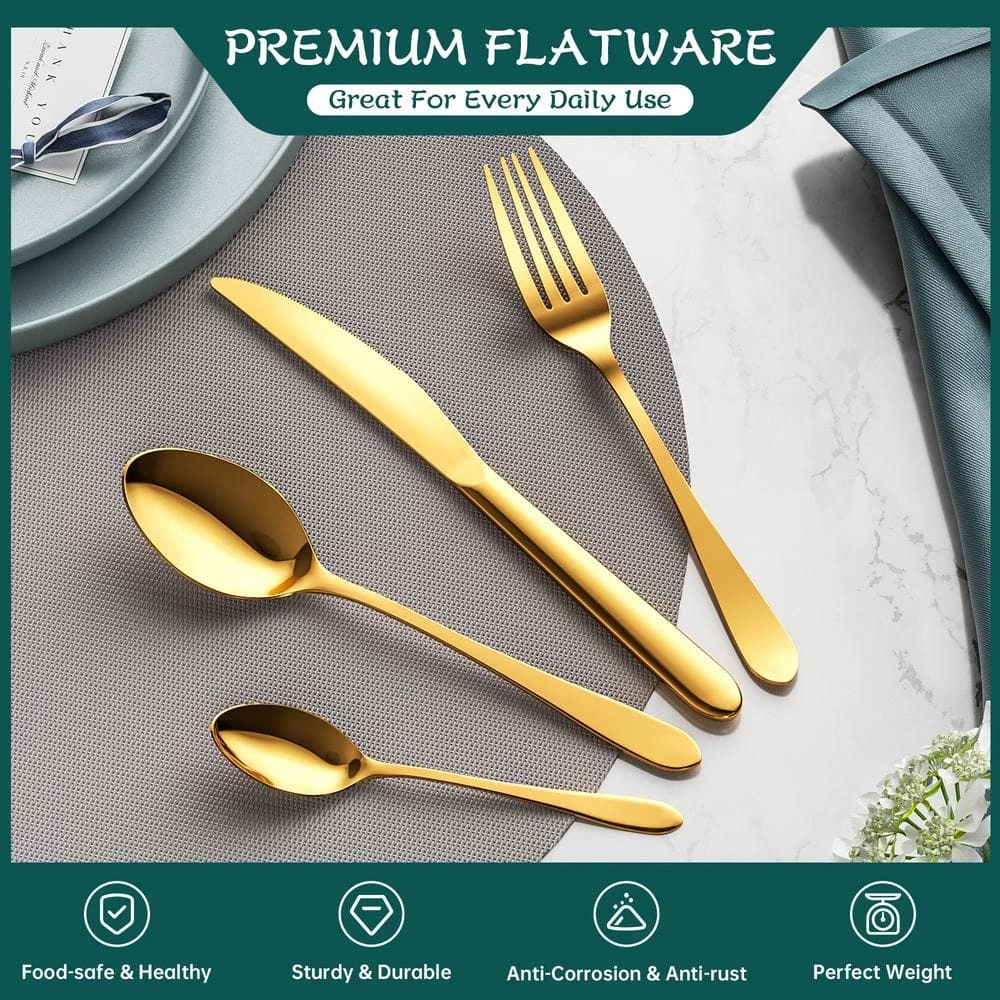 Each piece is fabricated from high quality 18/10 stainless steel for optimal corrosion resistance with a luster finish. The flatware features carefully polished surfaces and edges which both look and feel good. This set of flatware will satisfy all the expectations of yours.