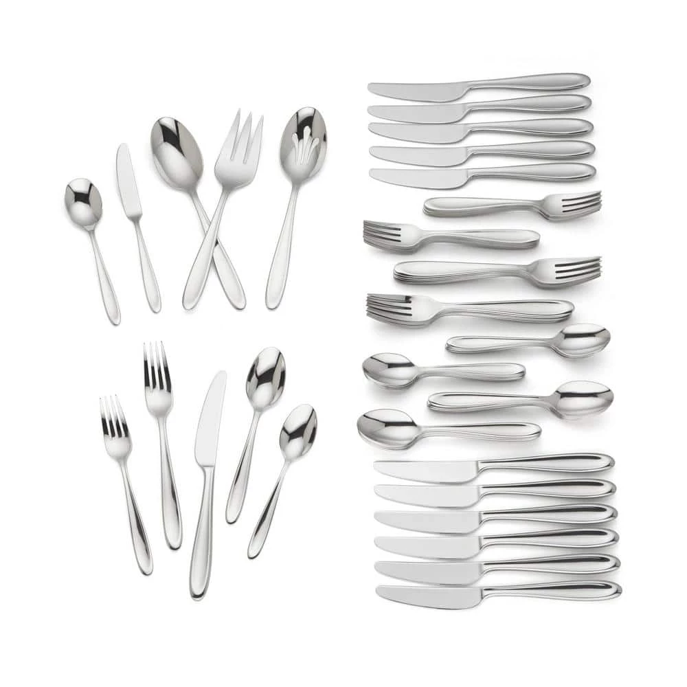 The slim and classic styling of the Cantera 65-piece Flatware Set is perfect for both formal and casual occasions. The set includes twelve 5-piece place settings plus five serving pieces. Easy to coordinate with any style dinnerware, this lovely flatware set makes an impressive wedding gift.