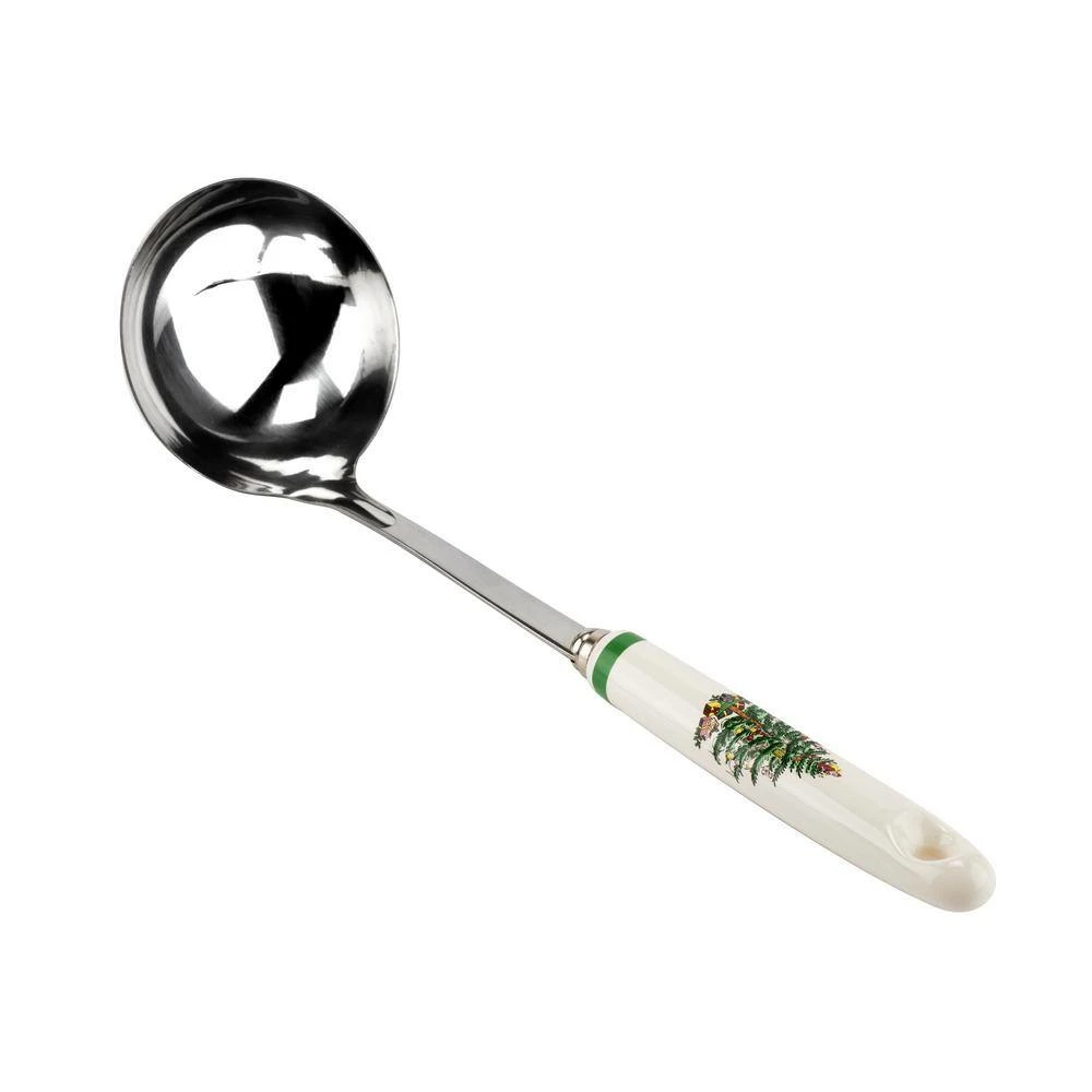 This Spode Christmas Tree ladle features the iconic tree motif design on its porcelain handle. This ladle is perfect for serving soups, stews or even punch during holiday celebrations.