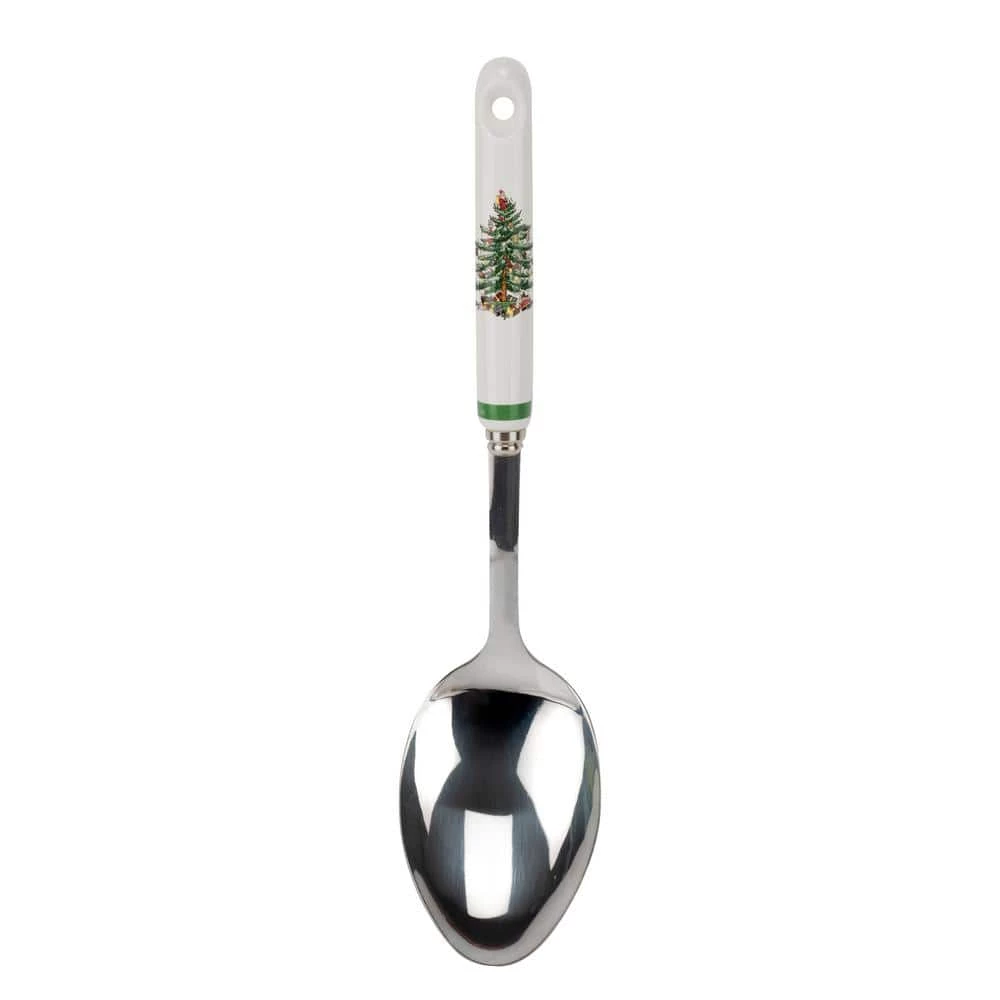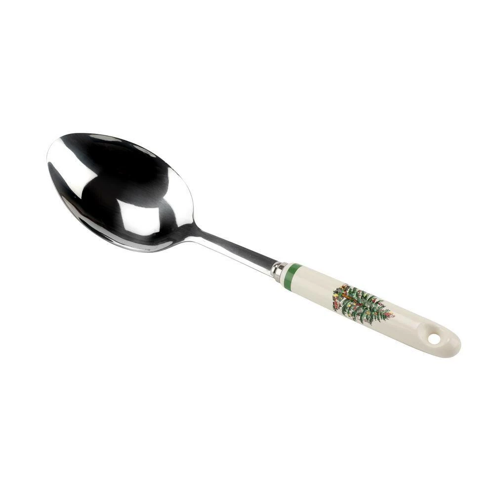 This Spode Christmas Tree serving spoon features the iconic tree motif design on its porcelain handle. This serving spoon is perfect for serving any dish at the dinner table or at holiday buffets. This Serving Spoon is handwash only.