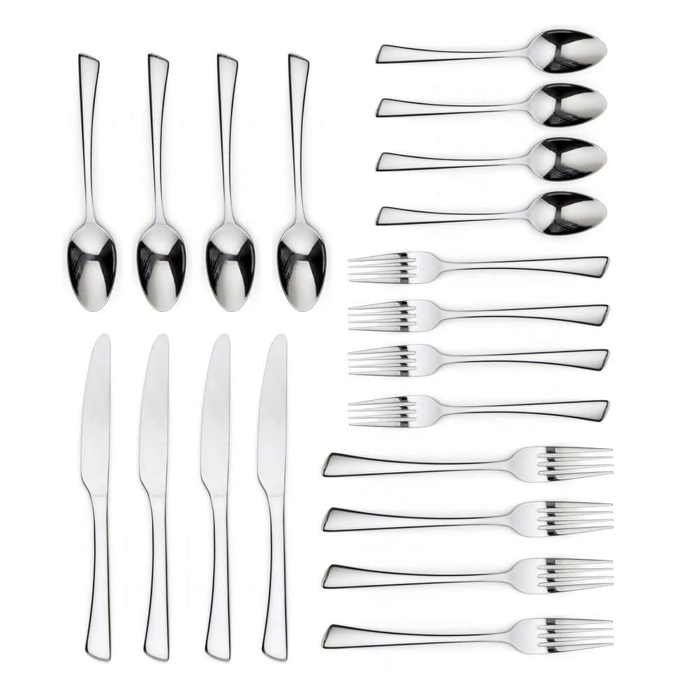 This set of high-quality, dishwasher safe utensils includes 4 dinner knives, 4 dinner forks, 4 salad forks, 4 soup spoons, and 4 teaspoons. 20-piece dining silverware set is sturdy and wear resistant. Crafted of Stainless steel to make this last for a lifetime. Give mealtime a fresh look with a timeless styled flatware set. Perfect for a casual dinner or more formal holiday celebration. This set is crafted from stainless steel, with soft curves and a clean look. This silverware set is dishwasher safe and can easily be washed by hand. Made with integrity and safety in mind. This silverware set is lead, cadmium, phthalate, and BPA Free. Perfect for your first apartment or for your forever home!