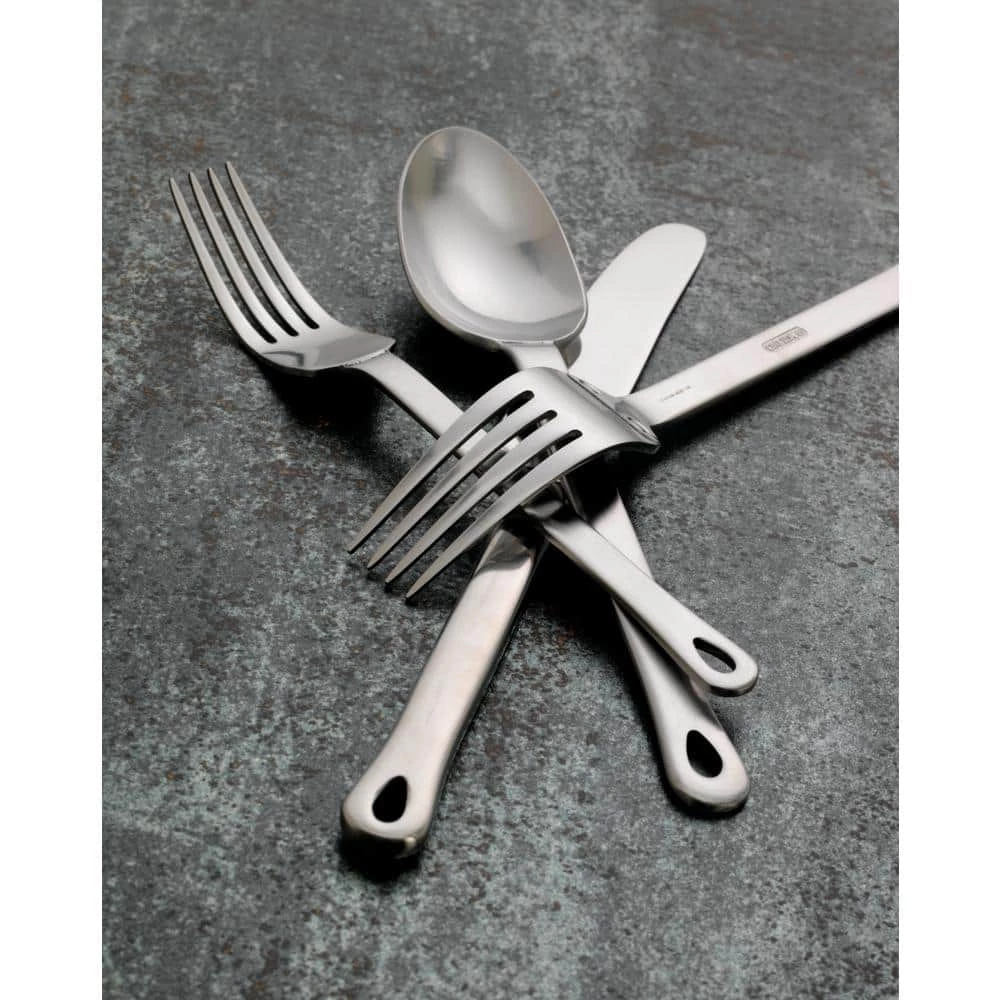 Inspired by the farm-to-table trend, Cooper features an open hole handle and brushed finish. The clever design that resembles classic riveted cookware will complement any casual table setting. Dishwasher safe.