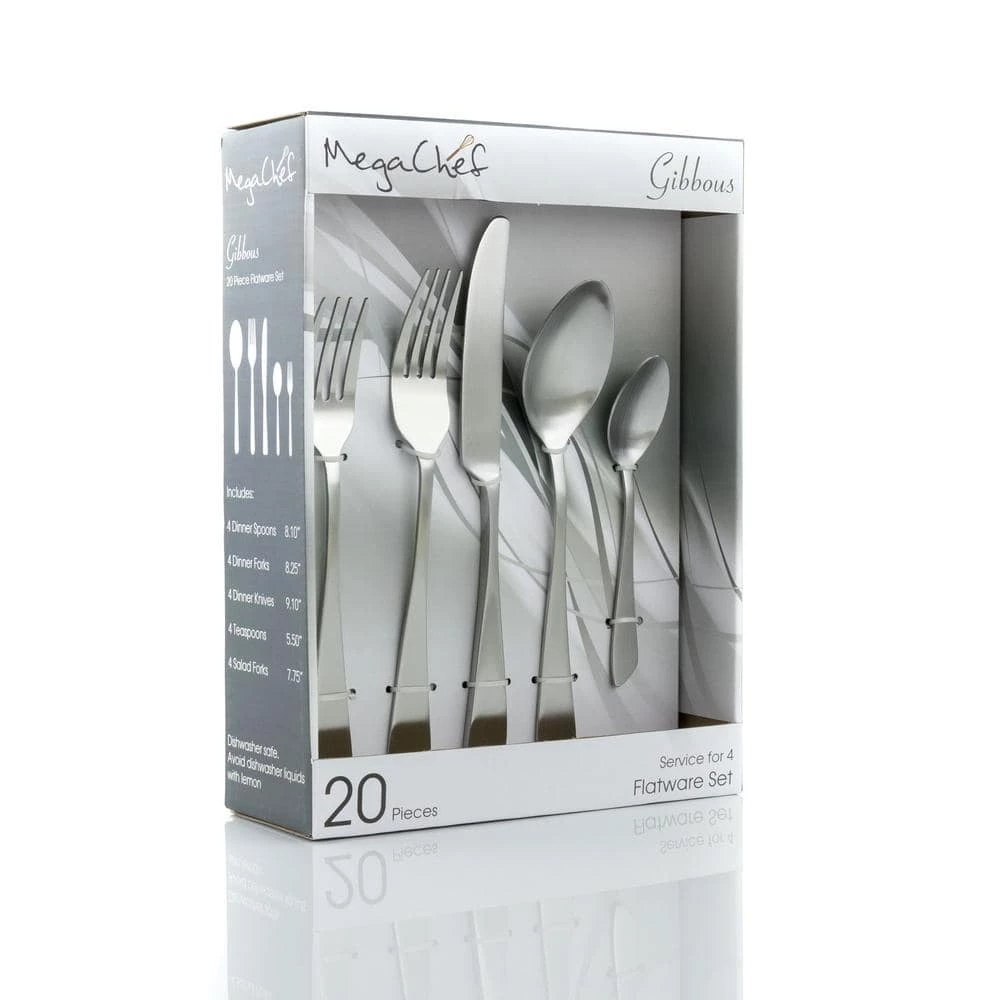 The MegaChef Gibbous 20-piece Flatware Set is made of high quality food grade stainless steel, the quality material in high standard resists corrosion and rust, ensures long-lasting use. The Gibbous Silverware Set is smoothly finished with no sharp edges, safe and comfortable for both adults and children. Each piece in this Utensil Set is versatile and perfectly weighted and balanced to feel comfortable in your patrons hands. With its proper sizes this set can fit perfectly with your other dinnerware or tableware sets.