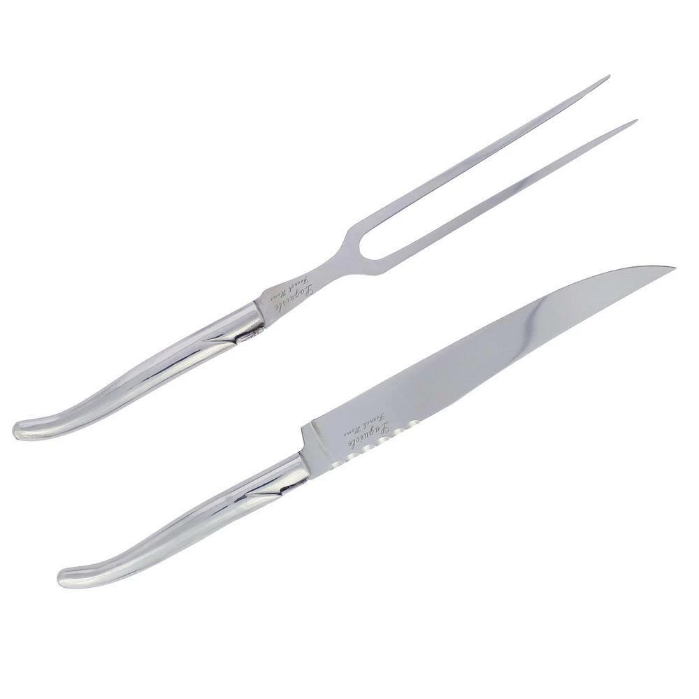 - 12 in. carving knife and fork is right size for carving at dining table or in kitchen