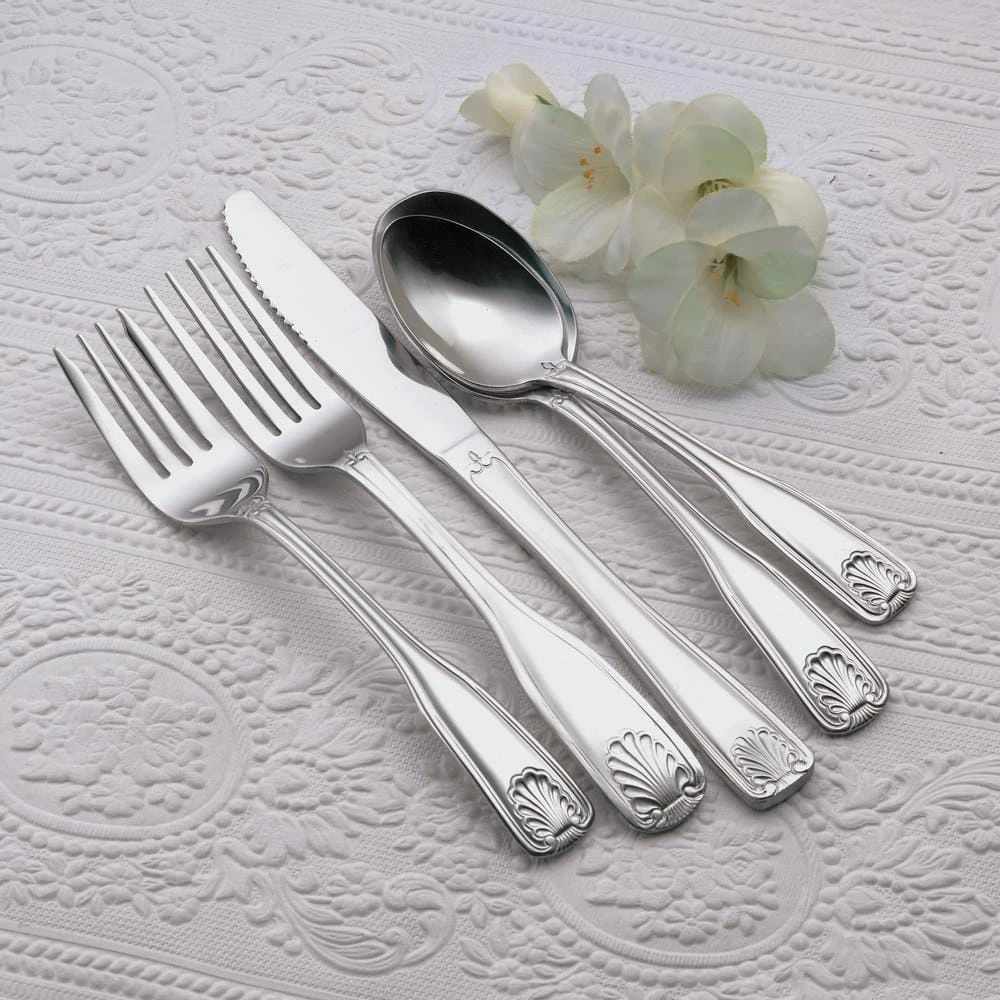 The Laguna pattern offers the ever-popular shell motif. This 18/0 flatware design is at home in a casual, fast-paced establishment with high volume. This flatware set is made of 18/0 Stainless Steel and is dishwasher safe.