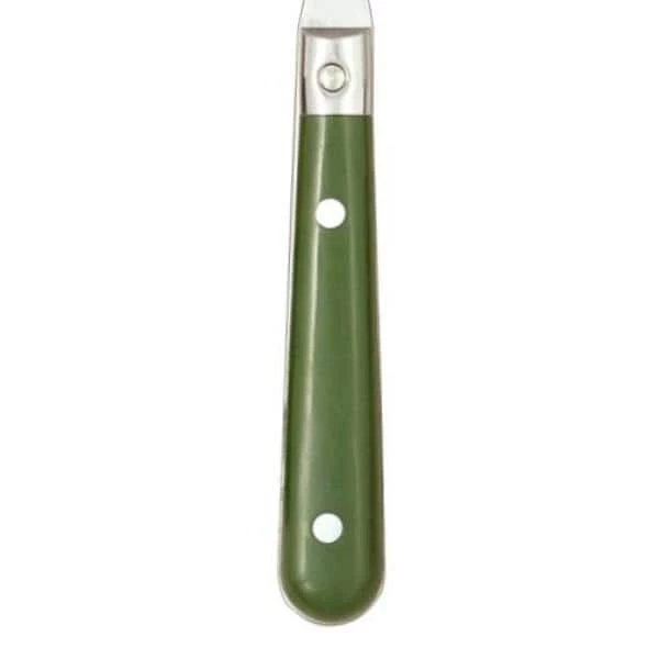 Classic French Bistro design, improved and updated to grace a sunny deck, beach house, or any casual setting. Colorful, and durable, with full stainless tang construction. ABS plastic handles are sonic welded, and riveted to the steel core for lasting durability, and good weight.