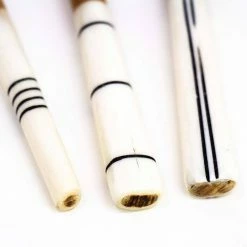 - Patterns are applied by placing wax on the white bone and dipping the bone into a dark brown/black dye, resulting in the beautiful African mud cloth designs.