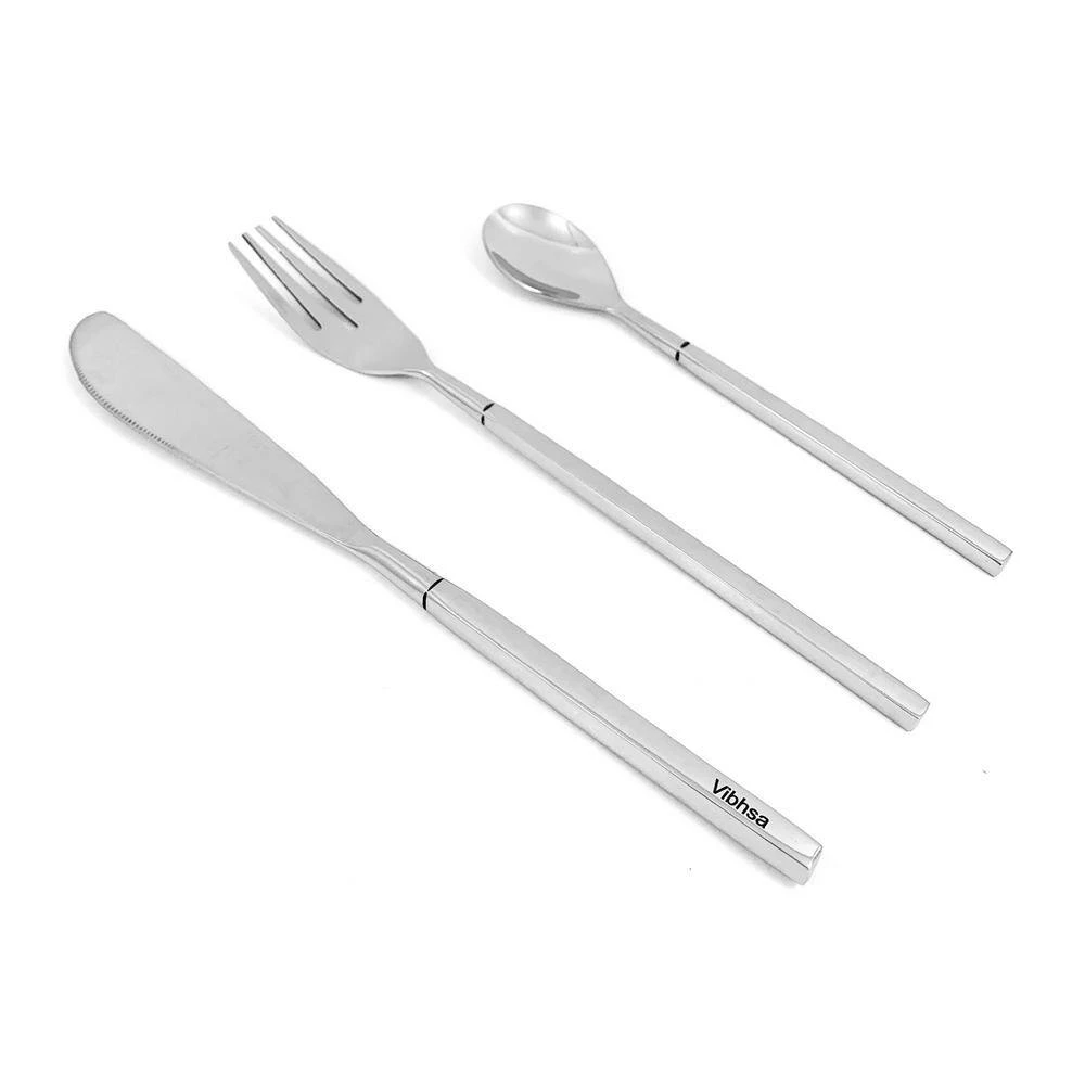 - Set includes 1-piece of each: 8.5 in dinner fork, 9 in dinner knife, 8.5 in. tablespoon, 6.5 in. teaspoon, 7.2 in dessert fork