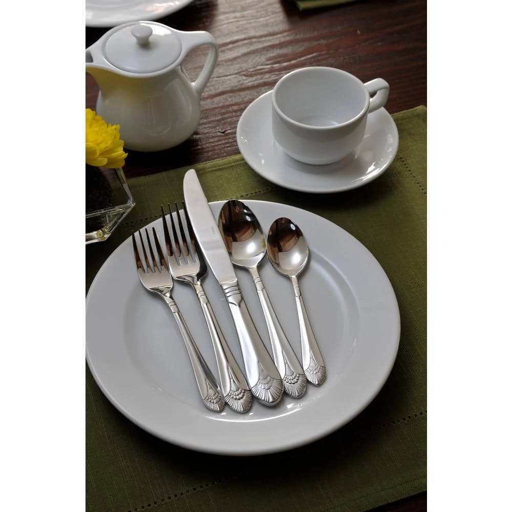 This richly sculpted, plume-like design is finely crafted. New York is bound to be noticed and appreciated by your patrons for its beautiful finish and exceptional quality. This flatware set is made of 18/10 Stainless Steel and is dishwasher safe.