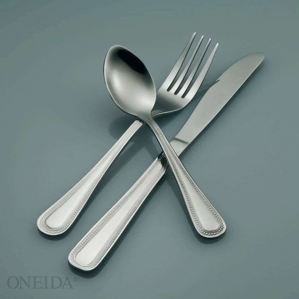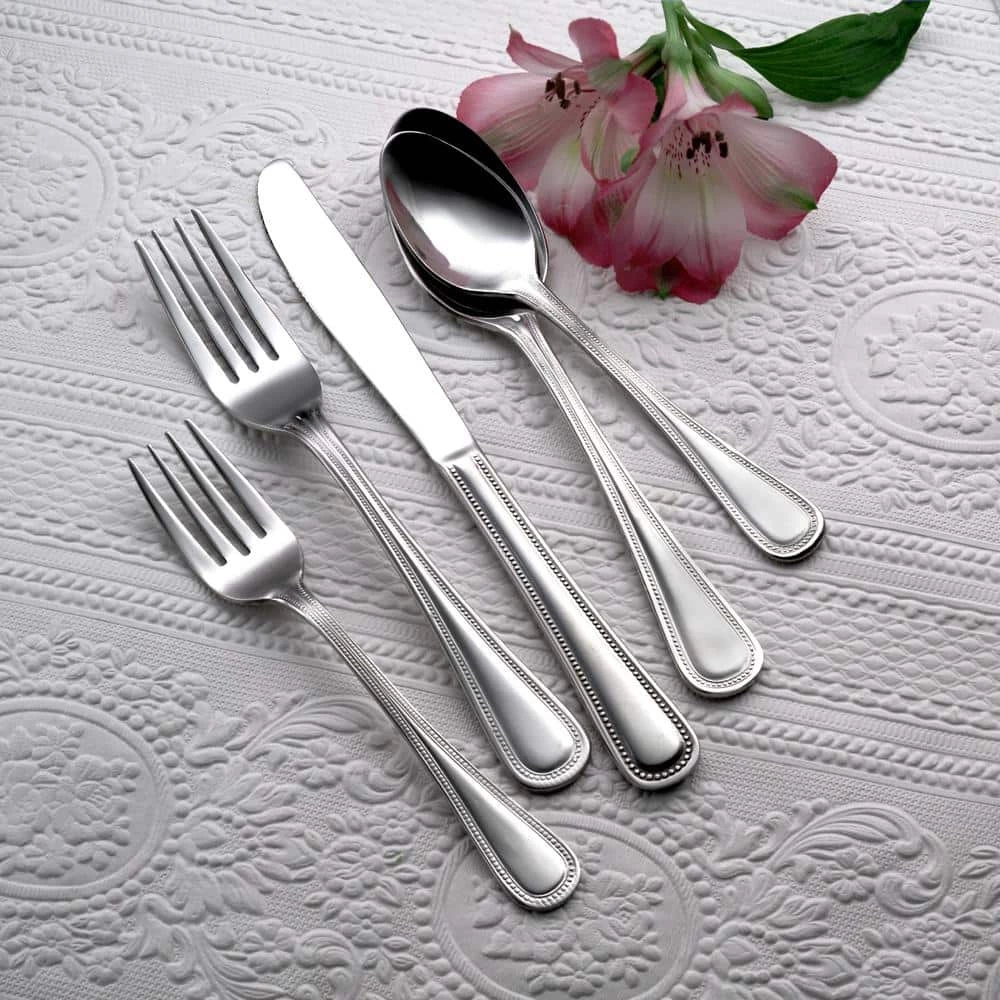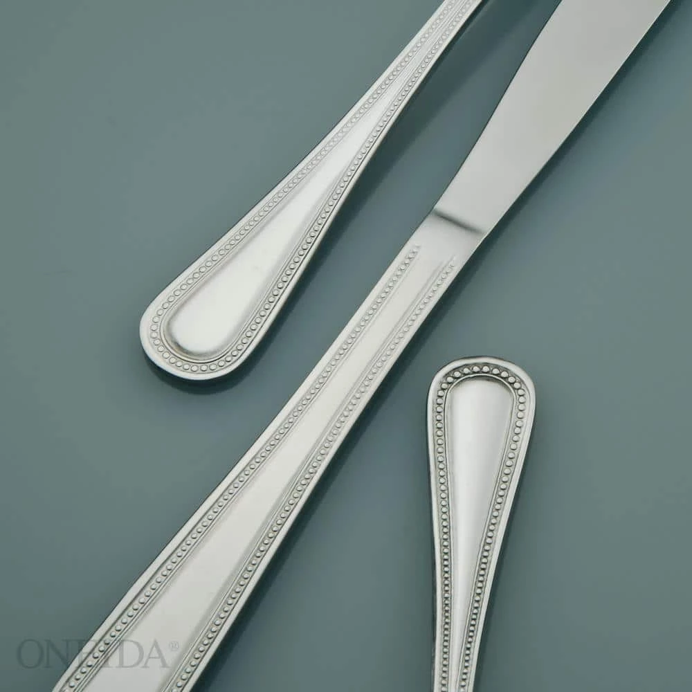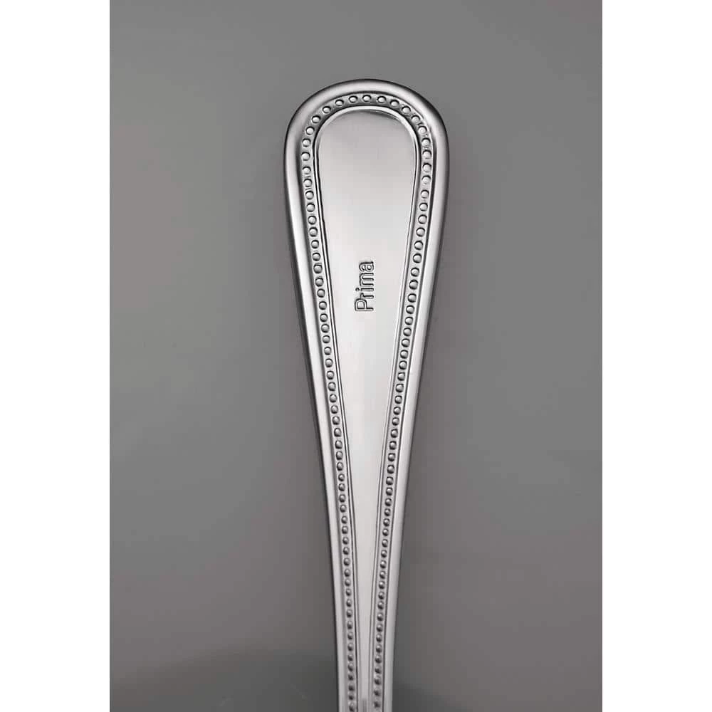 Prima features a delicate beaded border highlighting its gently rounded handles. This stainless pattern is ideal for high-volume dining. This flatware set is made of 18/0 Stainless Steel and is dishwasher safe.