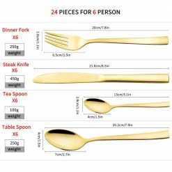 24-Piece 18/8 Gold Stainless Steel Flatware Set Knife Fork Spoon Set (Service for 6) by Velaze