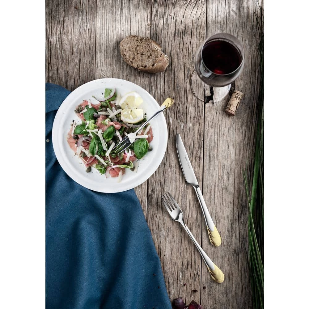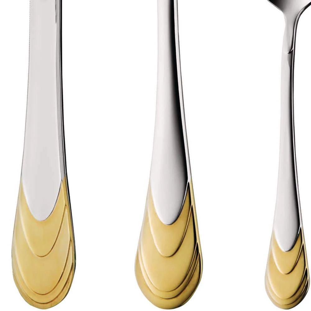 Add a touch of simple elegance to your dinnerware with this 30-piece Waterfall flatware set. With enough settings for 6 guests, and crafted from 18/10 stainless steel, this set is sure to be a part of your dining experience for years to come. Easily cleaned with soap and water. Set includes: 8.75 in. knife (6); 8.25 in. spoon (6); 8.5 in. fork (6); 6 in. cake fork (6); 5.75 in. coffee/tea spoon (6).