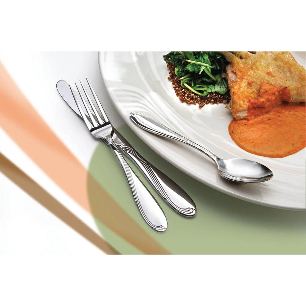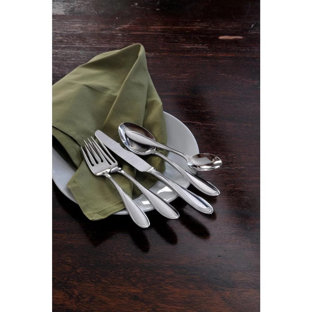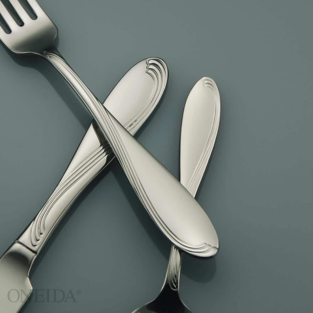 Sweeping asymmetrical lines give Scroll stainless a fashionable, fresh look. This flatware exudes the kind of quality and craftsmanship synonymous with Oneida. This flatware set is made of 18/8 Stainless Steel and is dishwasher safe.