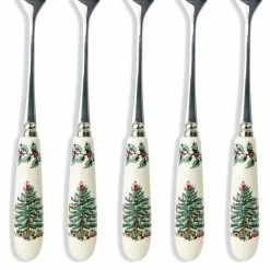 Christmas Tree 6 in. 6-Piece Stainless Steel and White Porcelain Teaspoon Flatware Sets by Spode