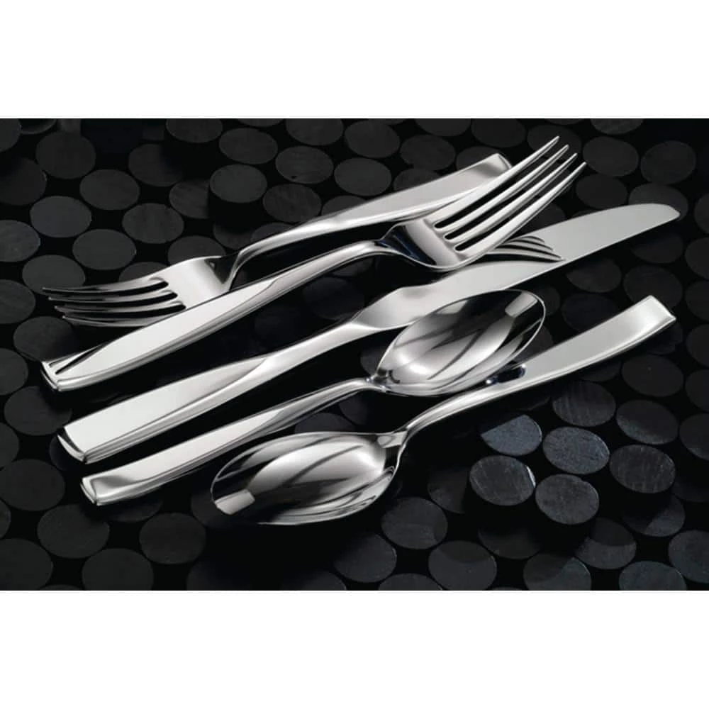 Clean lines and simple styling are enhanced by a small wave in the handle of the new Tidal pattern from Oneida. Subtle design elements heighten the level of sophistication of this pattern.